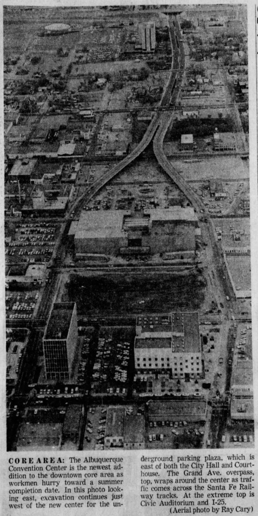 A March 1968 Albuquerque Journal article reported that a site near Winrock Shopping Center was being seriously considered for the city’s new Convention Center10. Another editorial proposed placing the civic center in “an area adjacent to Coronado Center,” citing ease of access, fresh image, and parking abundance as selling points.