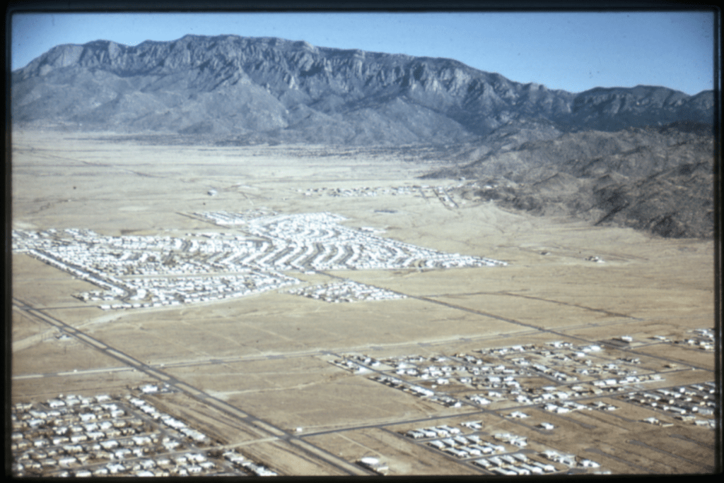 Albuquerque’s postwar growth was animated by a powerful promise: that one could live on the edge of nature, close to the city but far from its problems. Developers sold it relentlessly. Advertisements promised views, space, and silence. Suburbs were not just homes but sanctuaries.