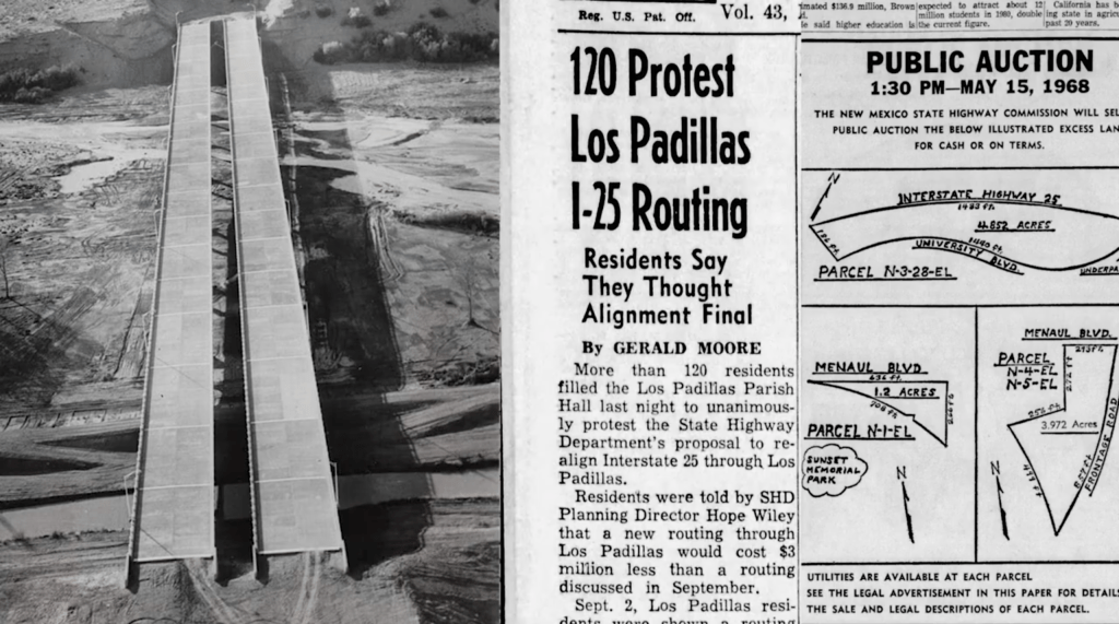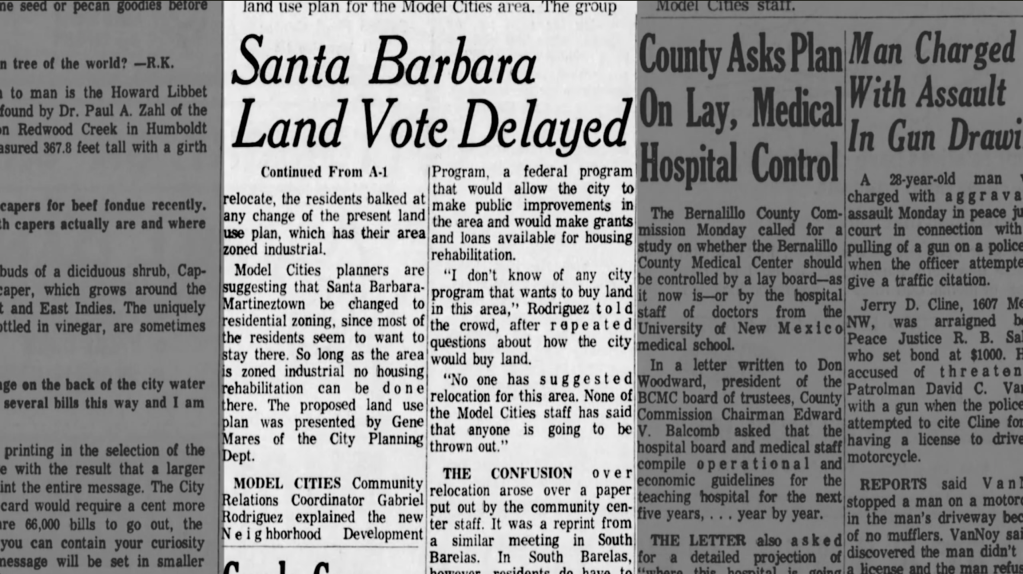 Albuquerque may have been spared the full devastation of urban renewal that gutted cities like Detroit or St. Louis—but the damage here was more targeted, and no less consequential. The neighborhoods it did hit were largely in the Valley: South Broadway, Barelas, and Santa Barbara-Martinez Town. Some, like Santa Barbara, were able to organize and resist the most aggressive proposals—blocking a planned Hall of Justice, a museum, and a new educational campus. But even those victories came at a cost. Large swaths of land were still bulldozed for road widening, intersection expansions, and infrastructure projects that rarely benefited the neighborhoods they disrupted. And as we explored in our piece on Interstate 25, the freeways were often routed along the edges of these same communities—creating physical barriers that cut them off from the rest of the city.